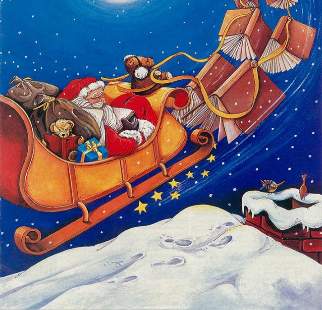 Santa and his Books The partial front cover of a book catalog. Artworks, NYC Acrylic/pen and Ink on watercolor paper.