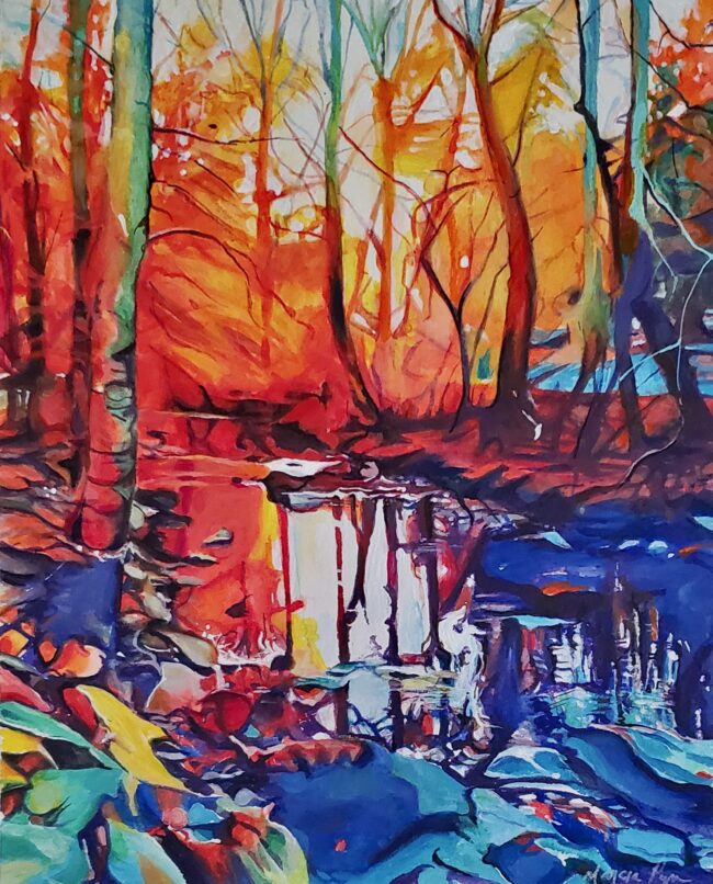 “Magic in the Moment” Fusion Art, 8th Annual Waterscape Exhibition, 2023 Bronze Award, Camelback Gallery, Autumn Festival of Art, 2023 Acrylics, “10 x 8”