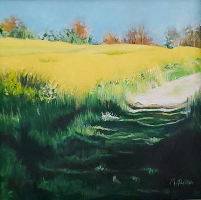 “Across the Hay” Honorable Mention, First Trees and Fields Art Competition, Contemporary Art Room Gallery Along the Camino in France. Not available for Purchase Acrylics,12″ x12″