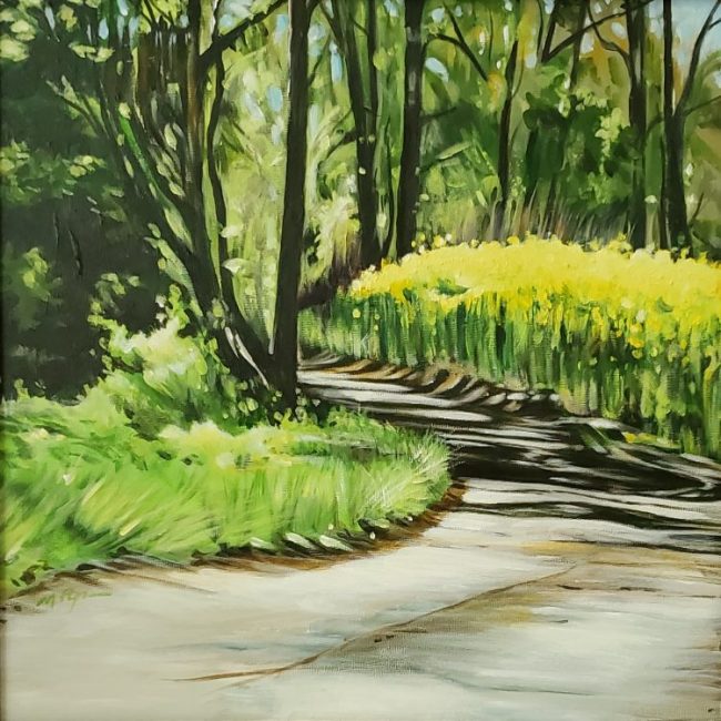 “Into the Light” Along the Camino in France. Not available for Purchase Acrylics,12″ x12″