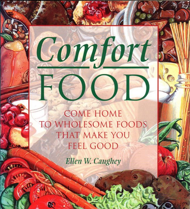“Comfort Food” The front cover of a cook book written by Ellen W. Caughey and published by Barbour Books. Acrylic on watercolor paper. 6 x 12”